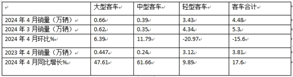 表4,根据中汽协数据,2024年4月大、中、轻客车销量同比、环比: