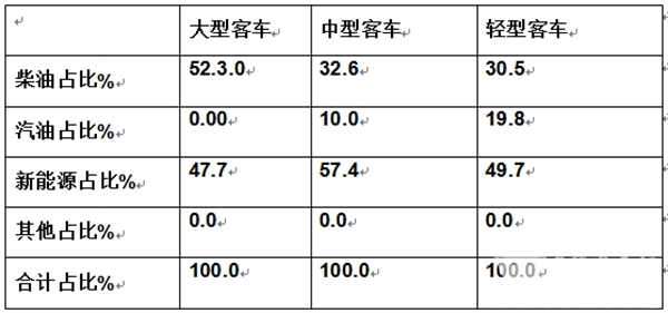 表6、据终端数据统计,2024年1-4月,按搭载动力燃料划分客大中轻客车占比结构: