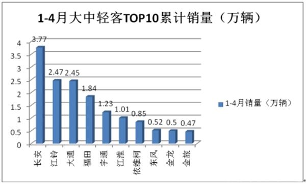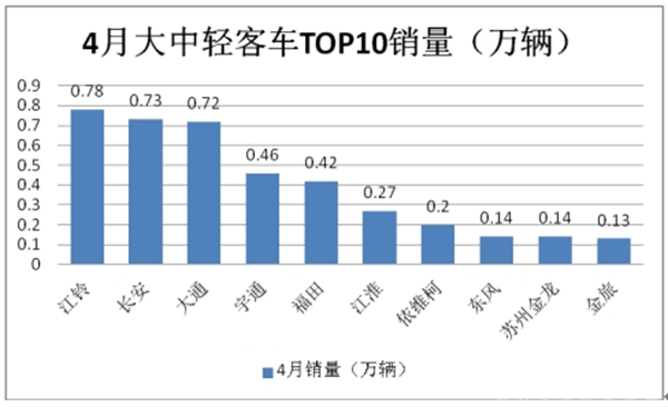 特点六、4月大中轻客车:江铃居榜首,长安、大通分别居第二、第三