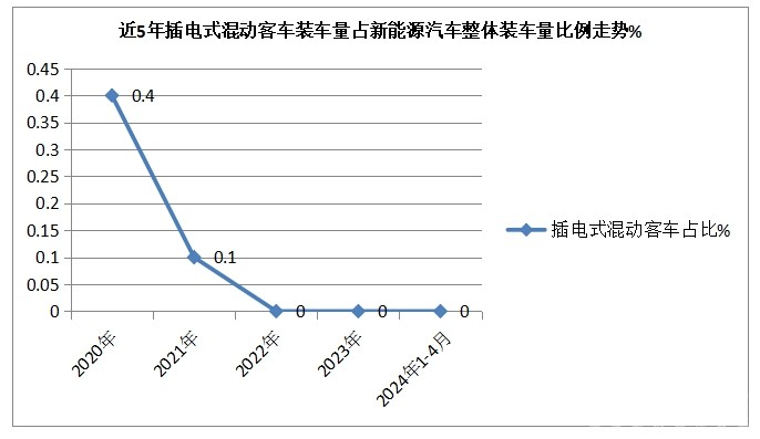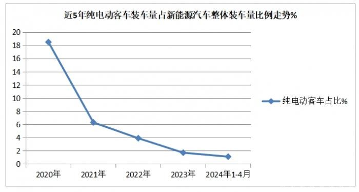 截图4,2024年1-4月及近年新能源客车装机量占新能源汽车大盘比例(数据来源:中国汽车流通协会)