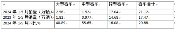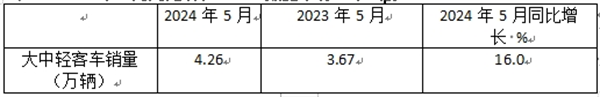表5,根据中汽协数据,2024年前5月大、中、轻客车累计销量及同比: