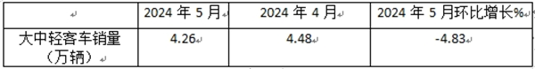 表4,根据中汽协数据,2024年5月大、中、轻客车销量同比、环比: