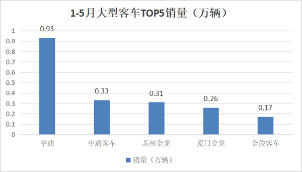 特点七、前5月累计销量:大中型客车宇通第一;轻客长安夺冠