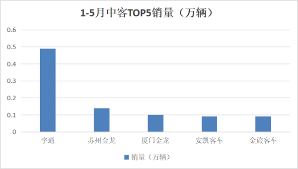 根据中汽协数据,2024年1-5月大中轻客车销量TOP10: