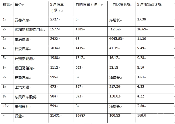 五菱首次冲上第一 远程\瑞驰分列二三 5月新能源轻客销量排行出炉