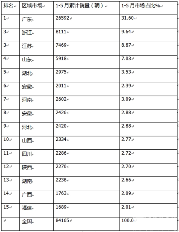 三、前5月新能源轻客都卖到哪里去了?广东占比超3成,一骑绝尘;浙江第二;江苏第三