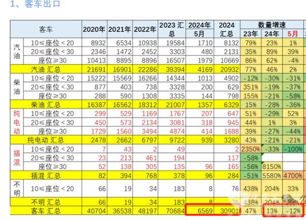根据中国汽车流通协会提供的海关数据,2024年5月我国客车出口6569辆同比下降12%;2024年1-5月我国客车累计出口30901辆,累计同比增长13%(见截图1)。那么今年5月及1-5月我国客车都出口到哪些国家?