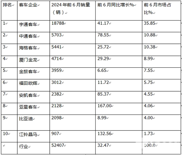 那么,2024年上半年6米以上客车销量有哪些特点?竞争格局咋样?