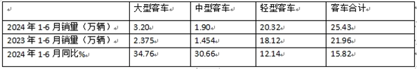 1、2024年1-6月大中轻客车累计销量25.43万辆,累计同比增长近15.82%。