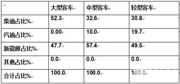 表6、据终端数据统计,2024年1-6月,按搭载动力燃料划分客大中轻客车占比结构: