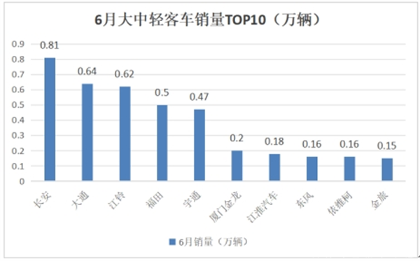 6月大中轻客车:销4.31万辆降3.91%,大客领涨同环比;长安\大通\江铃前三