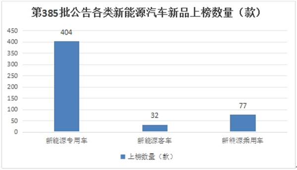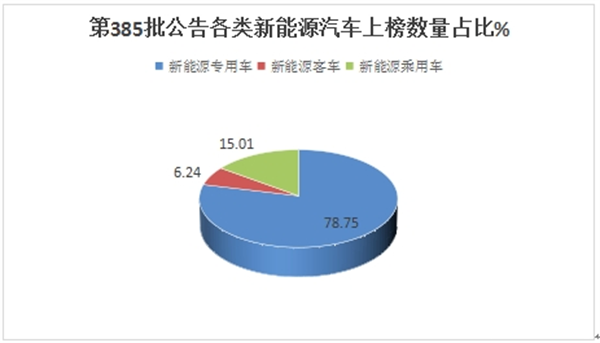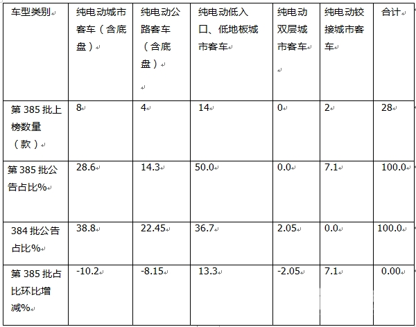 表1,根据工信部数据,第385批新能源汽车公告中各大类车型上榜数量及占比、占比环比增减:
