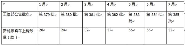 表2,2024年1-7月工信部发布的各批次公告中上榜的新能源客车数量(数据来源:工信部)