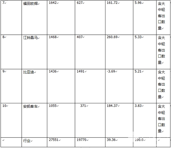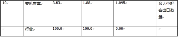 ---中通客车出口650辆,居第三,同比增长4%,跑输客车出口大盘;环比增长5.69,跑赢客车出口大盘,市场占比11.36%;