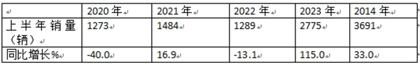---上半年累计销售3691辆,累计同比增长超3成(33%)。