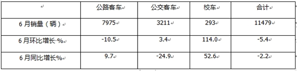 据分析主要是今年5月销量基数较高,加之今年6月旅游市场有所降温,因此导致6月公路客车环比下降;