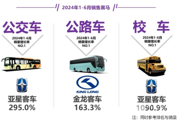 总之,在2024年1-6月的公路、公交和校车三大客车细分市场中,公路客车领涨领跑,表现亮眼。