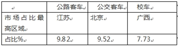 表5,根据终端上牌信息,2024年1-6月5米以上客车三大细分市场市场份额最高区域及占比统计: