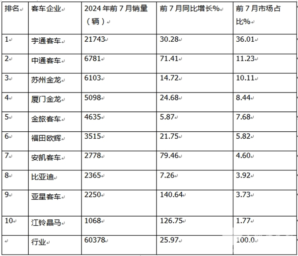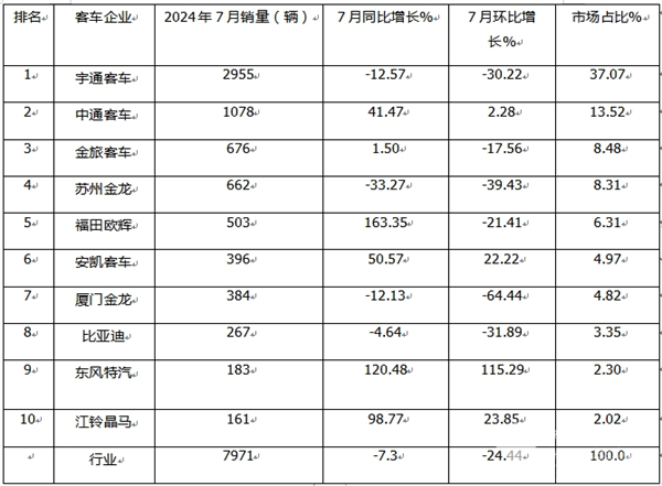 那么,2024年7月米以上客车销量有哪些特点?竞争格局咋样?