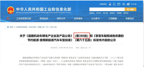 2024年8月8日,工信部发布第386批汽车新品公告,申报新能源汽车产品的共有208户企业的587个型号,其中纯电动产品共154户企业503个型号、插电式混合动力产品共35户企业52个型号、燃料电池产品共19户企业32个型号。