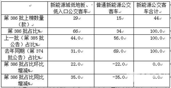 表3,根据工信部数据,第386批公告中上榜的新能源低地板低入口城市客车占比及占比同比、环比比较: