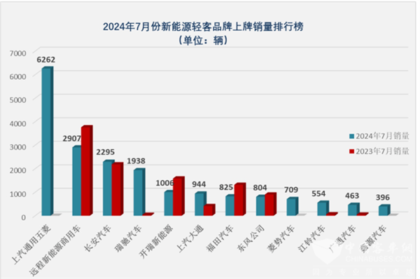 上表显示,在2024年1-7月新能源轻客累计销量中: