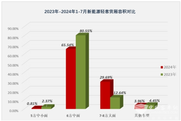 截图2,按货箱容积划分,20241-7月各类新能源轻客销量占比及占比同比(数据来源:终端上牌信息)