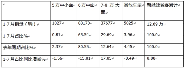 总之,在今年1-7月新能源轻客市场中,6方中面最畅销,7-8方大面增量最多