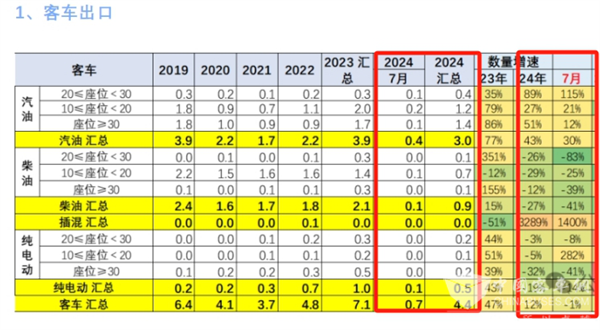截图1,2024年7月及1-7月我国客车出口数量及同比(数据来源:中国汽车流通协会提供的海关数据)