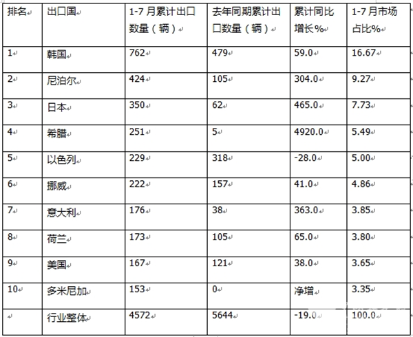 ---其余出口国数量均在250辆以下。