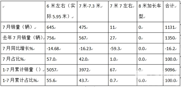 那么今年7月考斯特客车市场究竟有何特点?