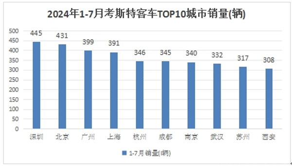 上图可见,在2024年1-7月,考斯客车流向TOP3区域市场是深圳、北京、广州。
