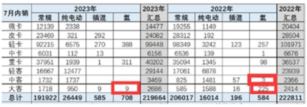 据分析一是由于去年同期燃料电池汽车的销量较低(242辆),客观上给今年7月燃料电池汽车在数据层面的同比增长提供支持;二是今年7月,在氢能政策的支持下,各地加大了新能源汽车的推广应用力度。