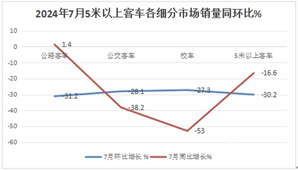 上图表可见,在2024年7月5米以上公路、公交、校车三大细分市场中: