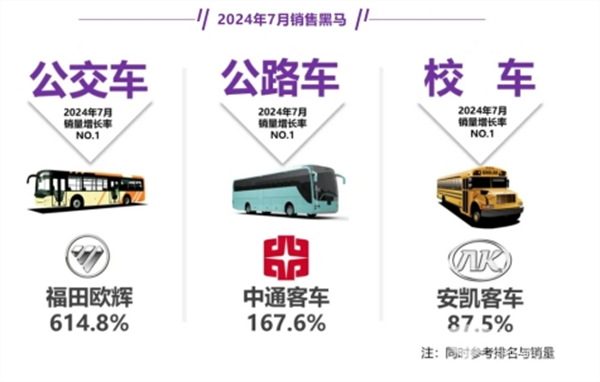 那么2024年7月公路、公交和校车三大细分市场销量有何主要特点?现予以简要分析。