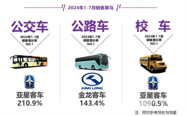总之,在2024年1-7月的公路、公交和校车三大客车细分市场中,公路客车领涨领跑,表现亮眼。