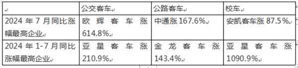 截图1,2024年7月客车三大细分市场同比增长最猛的车企(数据来源:慧眼看车)