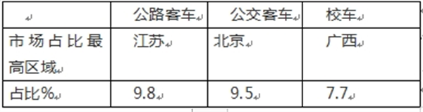 2、公交客车占比分别为28.8%和30.6%,均为第二大细分市场,但占比同比分别减少10.14和8.56个百分点,均是占比同比减少最多的细分市场;