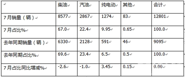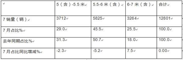 一、7月销售1.28万辆,同比增长超4成,创客车各细分市场最高增幅增