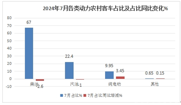 表3,按动力燃料种类划分,2024年7月农村客车市场占比及占比同比增减(数据来源:终端上牌信息)