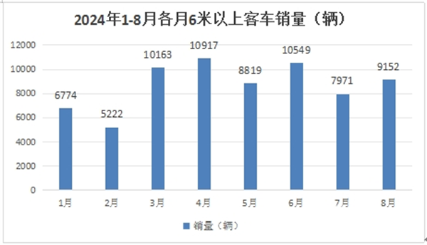 作为2024年下半年第二个月的8月份,我国6米以上大中型客车销量如何?