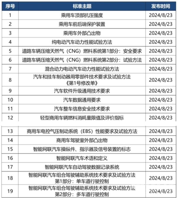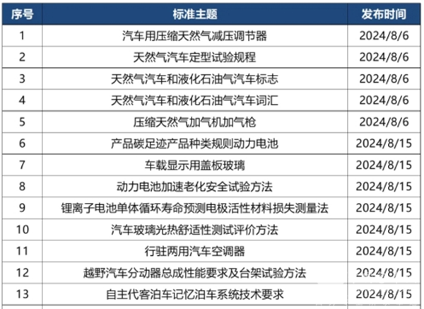 对此,笔者根据慧眼看车等对2024年8月相关汽车行业标准法规汇总进行归纳汇总,供行业参考!