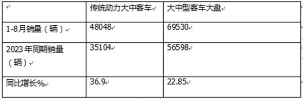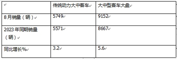 表2,根据中国客车统计信息网数据,2024年8月传统动力大中型客车销量同比与大中型客车大盘比较: