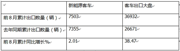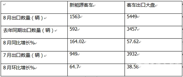也就是说,今年8月,我国新能源客车出口同环比均跑赢我国客车出口大盘,成为推动今年我国客车出口增长的推进器。据分析主要是去年同期及上个月新能源客车出口基数较低,给今年8月的新能源客车出口同环比增长奠定了基础。