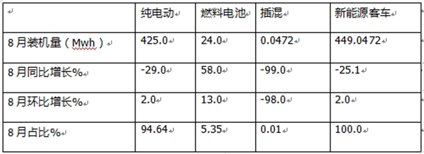 ----2024年1-8月燃料电池客车动力电池装机量同比增速创新高,表现较好