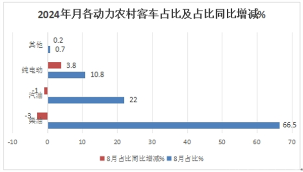 表3,按动力燃料种类划分,2024年8月农村客车市场占比及占比同比增减(数据来源:终端上牌信息)
