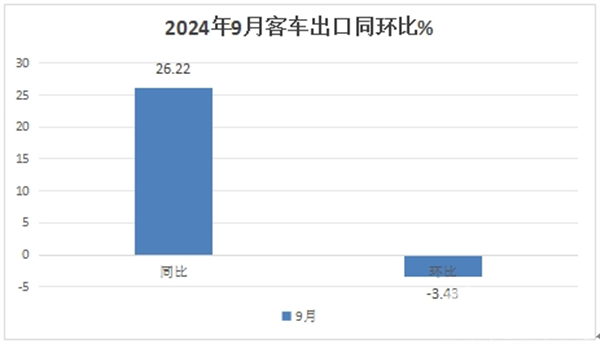 上图表可见,2024年9月客车整体出口数量、同环比及市场占比: