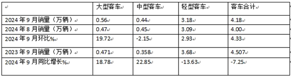 表4,根据商用车专业委员会提供的批发数据,2024年9月大、中、轻客车销量同比、环比: