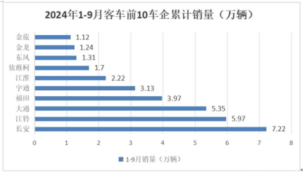 2、2024年1-9月大中轻客车累计销量排名:长安、江铃、大通居前三