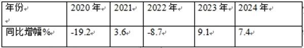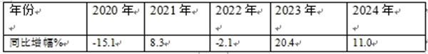 2020年前三季度到2021年前三季度出现增长,2022年前三季度同比出现下降;2023年前三季度和2024年前三季度同比均呈现增长。